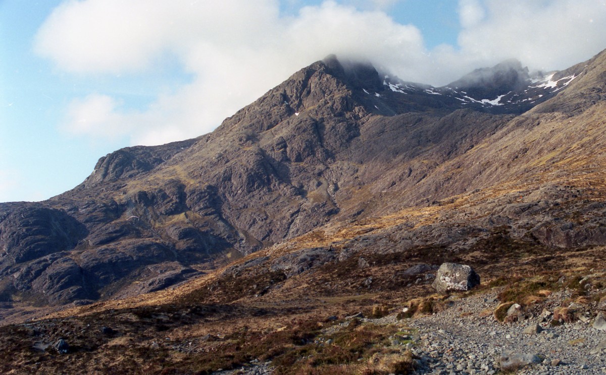 Dit is duidelijk de mooiste berg gezien van deze kant: een geisoleerde kegel,in tegenstelling tot die verdere keten van mopjes en piekjes.Sgurr Dearg met de In Pin lijkt me wel leuk.